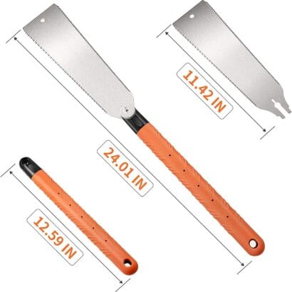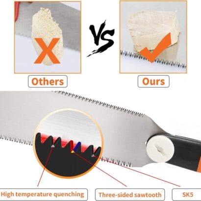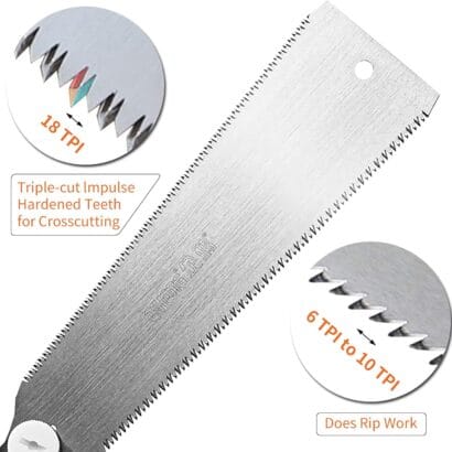 - 【2 منشار في 1】منشار يدوي ياباني مع أسنان مقواة من أجل ارتداء طويل. الجانب الدقيق لأسنان المنشار ثلاثية القطع 18 TPI للحصول على دقة عالية تعمل على الجانب الآخر من 6TPI إلى 10TPI للتمزيق. مثالي للبامبو من الخيزران المتقاطع المتوسط والأخشاب والأنابيب البلاستيك بي في سي وABS ومواد الخشب الرقائقي ام دي اف